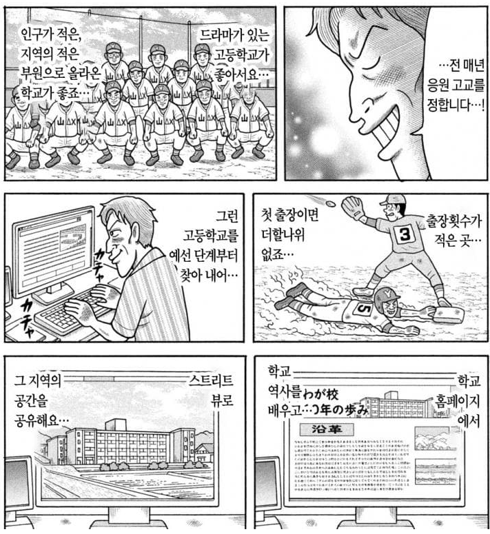 매년 응원 고교(최대한 약팀으로)를 정해서 응원하고