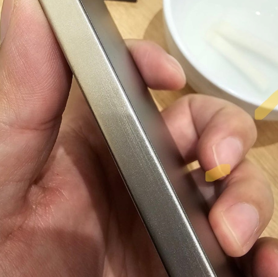 - 테두리 얼룩(금속 재질에 가끔 발견되는 그런 얼룩, 닦이지 않음)