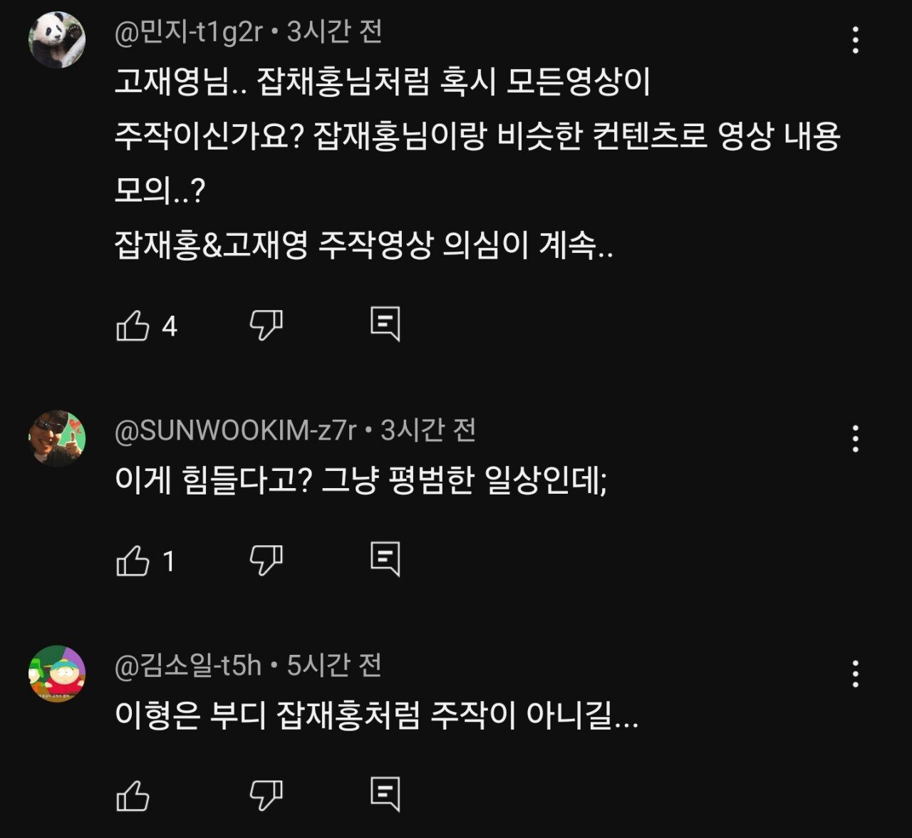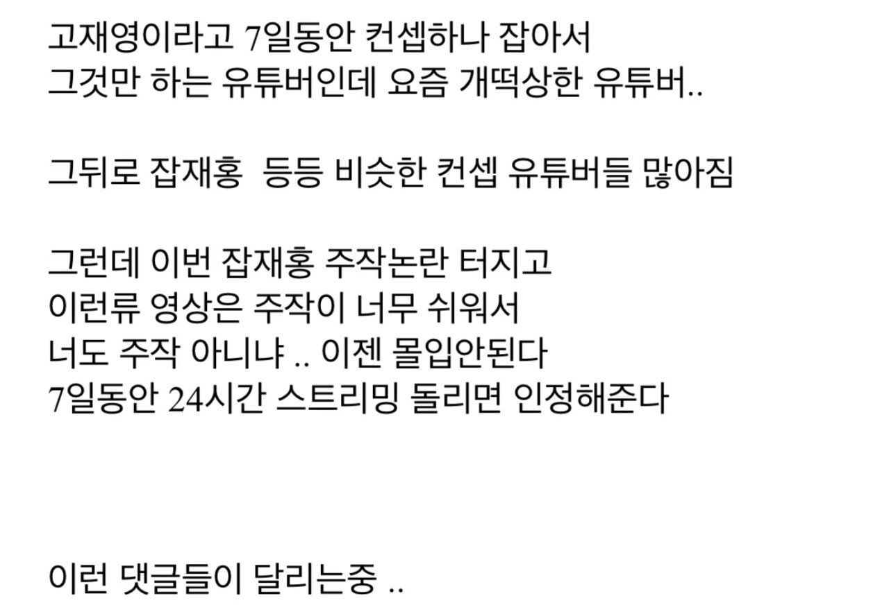 그러던중 이런 비슷한 컨셉을 가진 유튜버들이 떄아닌 곤혹을 치르고 있는데.