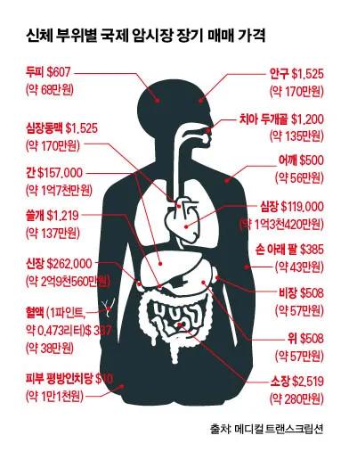 도탁스 (DOTAX) 신체 부위별 국제 암시장 장기 매매 가격 작성시간25.02.11|조회수48,477 목록 댓글 29 글자크기 작게가 글자크기 크게가 다음검색 현재 게시글 추가 기능 열기 북마크 공유하기 신고 센터로 신고 댓글 29 댓글 리스트 작성시간 25.02.11 생각보가 위가 싸고 신장이 비싸네 작성시간 25.02.11 안구는 왜케 싸지 작성시간 25.02.11 ㄷㄱ 작성시간 25.02.11 중국이 장기매매가 활발하니 저래싼건가? 작성시간 25.02.11 이식 가능한 부위는 싸고 아닌 곳은 카데바로 팔아제끼나 카페 방문해 더 많은 댓글 만나기!