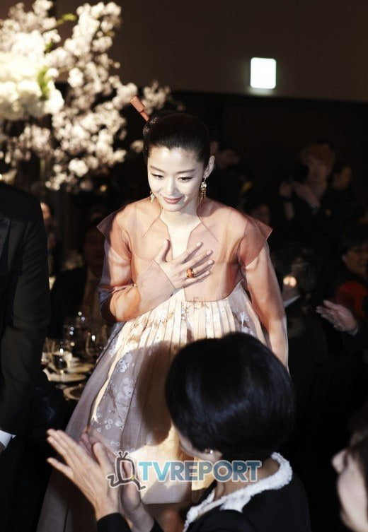 피로연에서 한복 디자이너 이영희가 디자인한 한복 입은 전지현