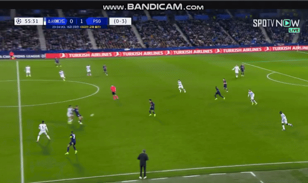 "지금 음바페의 자세를 보면 어깨가 완전히 열려있는 걸 볼 수 있다. 이 자세에서는 슈팅 각이 다 열려있기 때문에 골키퍼가 먼저 움직일 수 없다."