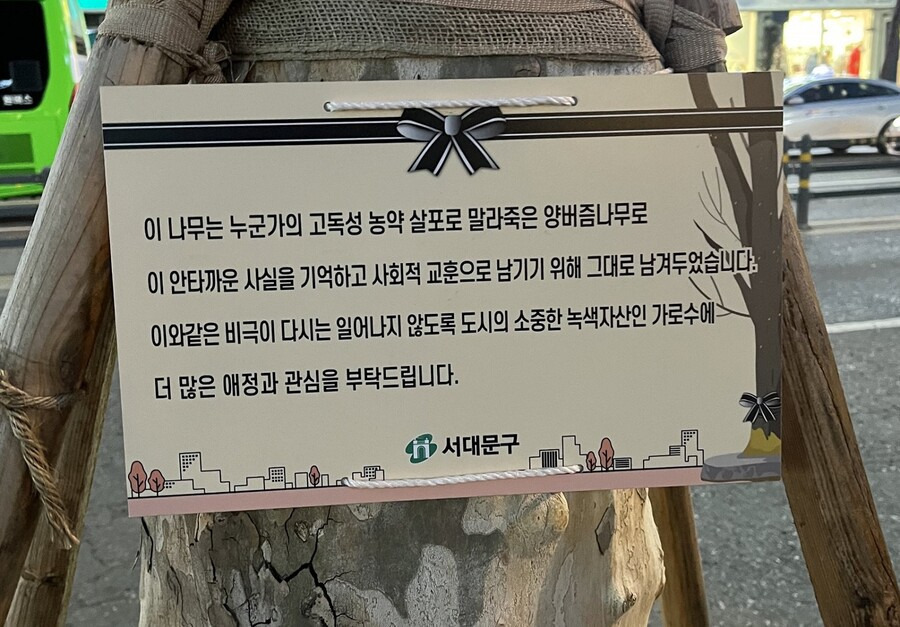 이런 불기소 결정문에 반발한 서대문구는 썩어버린 가로수에