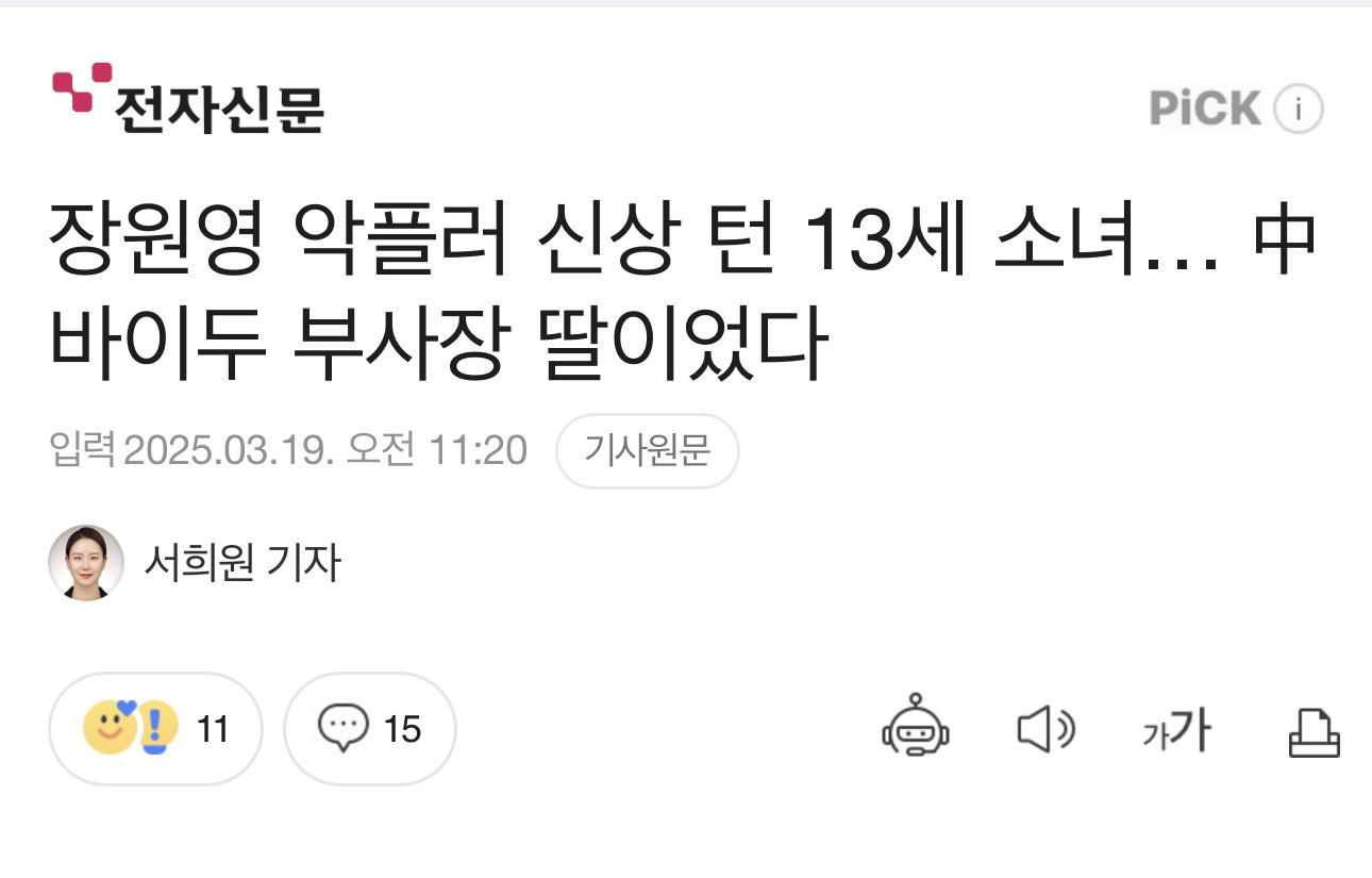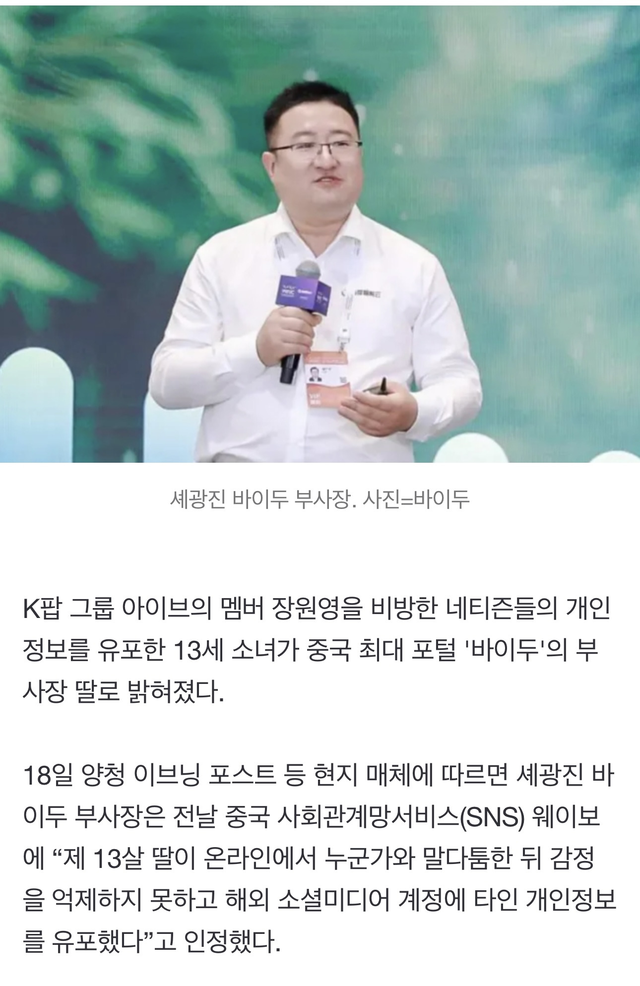 도탁스 (DOTAX) [[뉴스]]장원영 악플러들 신상 턴 13세 소녀… 中 바이두 부사장 딸이었다 작성시간25.03.20|조회수29,489 목록 댓글 11 글자크기 작게가 글자크기 크게가 비질란테 ㄷㄷㄷㄷㄷ 다음검색 현재 게시글 추가 기능 열기 북마크 공유하기 신고 센터로 신고 댓글 11 댓글 리스트 작성시간 25.03.20 ㅋㅋㅋㅋㅋㅋㅋ 작성시간 25.03.20 따..따거 작성시간 25.03.20 초통령이라 아이브 팬이였나 ㅋㅋ 작성시간 25.03.20 ㅋㅋㅋㅋㅋ이뭔 작성시간 25.03.20 13살 다크웹은 능력자네 ㅋㅋㅋㅋㅋ 카페 방문해 더 많은 댓글 만나기!