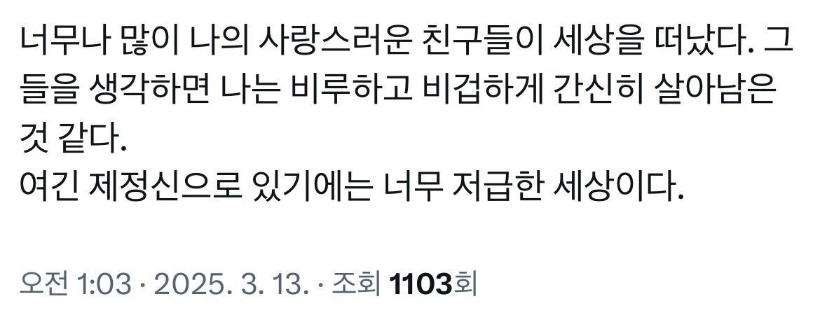 답댓글 작성시간 25.03.29 같은 카페라고 같은 사람이 반응하는것은 아니니까요