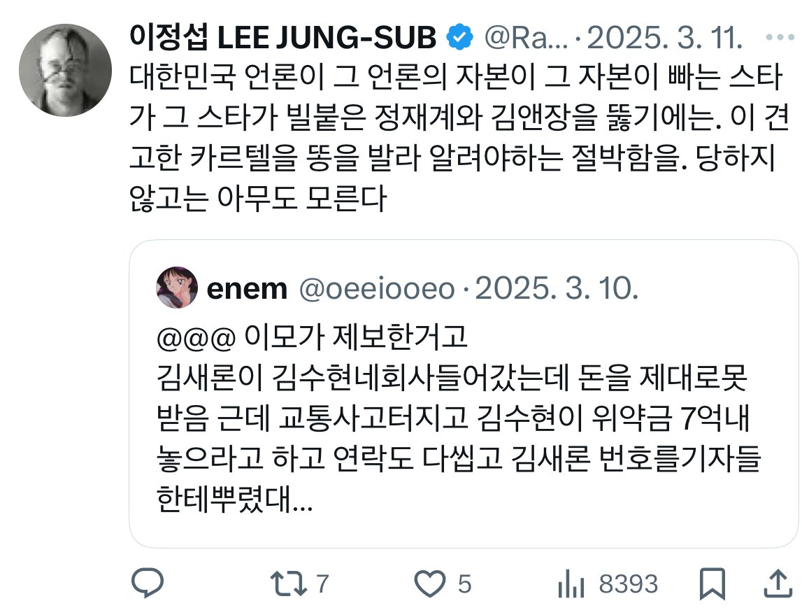 답댓글 작성시간 25.03.29 이런댓글도 저는 재밌음 ㅋㅋㅋㅋ