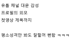 도탁스 (DOTAX) 유튜버 잘할 거 같은 연예인 유튜브 시작 작성시간25.03.31|조회수31,242 목록 댓글 12 글자크기 작게가 글자크기 크게가 다음검색 현재 게시글 추가 기능 열기 북마크 공유하기 신고 센터로 신고 댓글 12 댓글 리스트 작성시간 25.03.31 썸네일부터가 추성훈 YouTube 회사인 듯 작성시간 25.03.31 지인 인스타 댓글달기 컨텐츠만 진행해도 개꿀잼 작성시간 25.03.31 와 작성시간 25.03.31 병헌이형 부러워 작성시간 25.03.31 겁나재밌음 ㅋㅋㅋ 카페 방문해 더 많은 댓글 만나기!