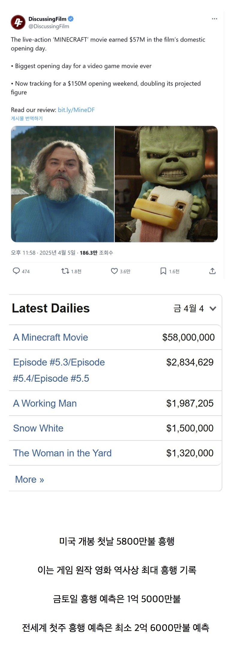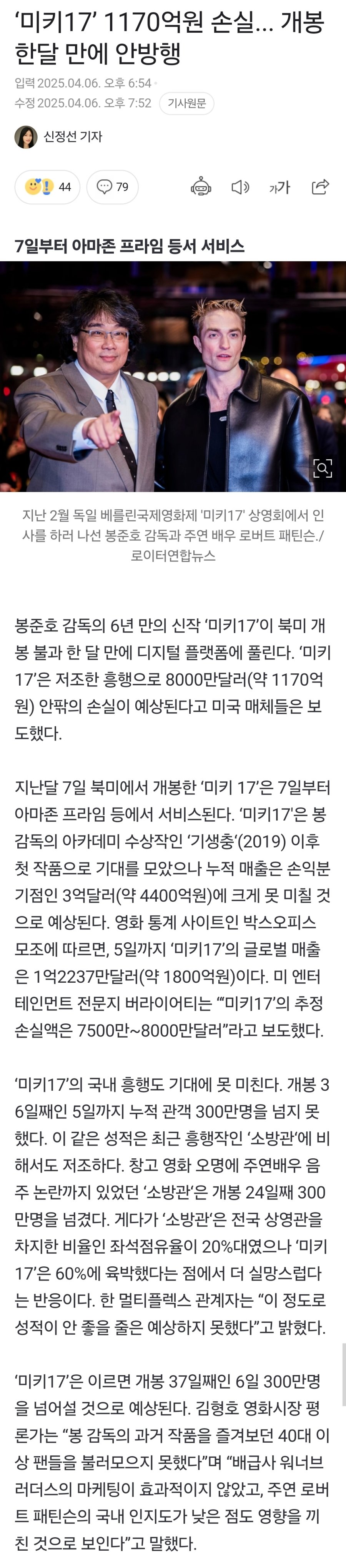 답댓글 작성시간 25.04.06 크리퍼죠. 크리처 CG가 생각보다 엄청 비싸요. 봉감독님도 최근 GV에서 그러셨고요. 그리고 산업에 대한 이해도가 부족하다보니 예산이 어떻게 활용되는지 모를뿐, 스튜디오 세트 제작비 부터 이것저것 들어가는 비용이 많습니다.