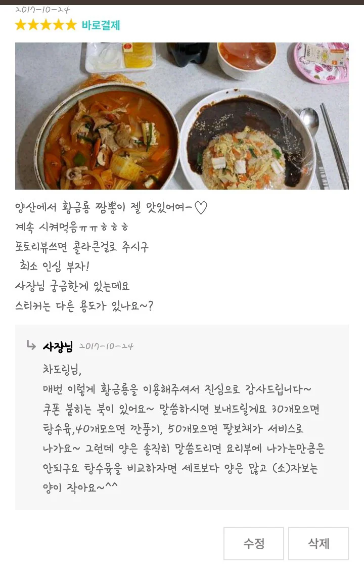 작성시간 25.04.14 양산?우리동넨데 시켜먹어볼까