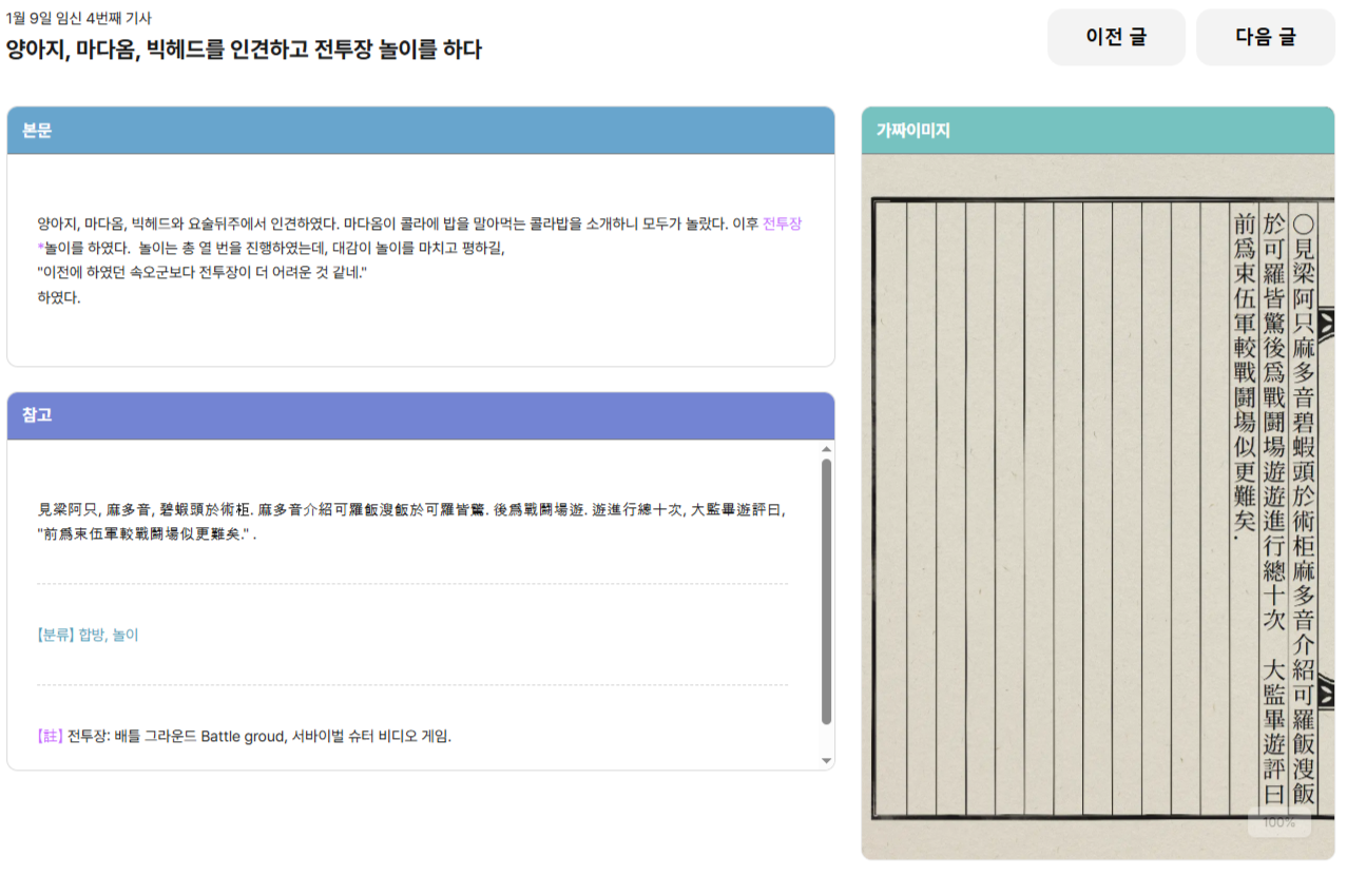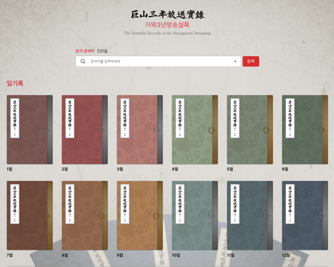 이런식으로 조선왕조실록 사이트처럼 날짜별로 정리되어 있고