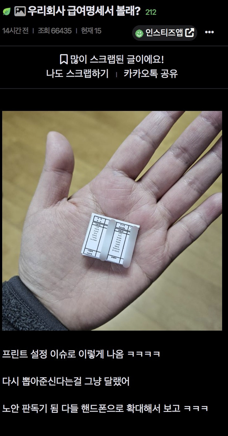 도탁스 (DOTAX) 우리회사 급여명세서 볼래? 작성시간25.04.15|조회수14,817 목록 댓글 3 글자크기 작게가 글자크기 크게가 다음검색 현재 게시글 추가 기능 열기 북마크 공유하기 신고 센터로 신고 댓글 3 댓글 리스트 작성시간 25.04.15 월급 쪼끄마하다고 쪼끄맣게 찍어주네 ㅠ 작성시간 25.04.15 미니어쳐 집에넣어두고싶네 작성시간 25.04.15 ㅋㅋㅋㅋㅋㅋㅋㅋㅋㅋ 카페 방문해 더 많은 댓글 만나기!