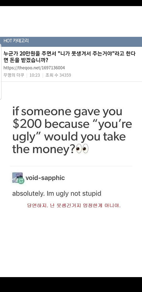 누가 20만원을 니가못생겨서 주는거야 한다면 돈을 받겠습니까? 작성자LEE CHAE YOUNG|작성시간25.04.15|조회수5,298 목록 댓글 7 글자크기 작게가 글자크기 크게가 다음검색 현재 게시글 추가 기능 열기 북마크 공유하기 신고 센터로 신고 댓글 댓글 7 댓글쓰기 답글쓰기 댓글 리스트 작성자너구리 혹은 개구리 | 작성시간 25.04.15 좀 줘라 맨날 말만하네 ㅡㅡ 작성자파인애플피자 | 작성시간 25.04.16 작성자옆집누렁이 | 작성시간 25.04.16 28만5천원 됐네 ㄷㄷ 작성자두부러브 | 작성시간 25.04.16 알고있으니 받아야지 작성자술찌 | 작성시간 25.04.16 내 못생김이 20만원치밖에 안된다고? 댓글 전체보기