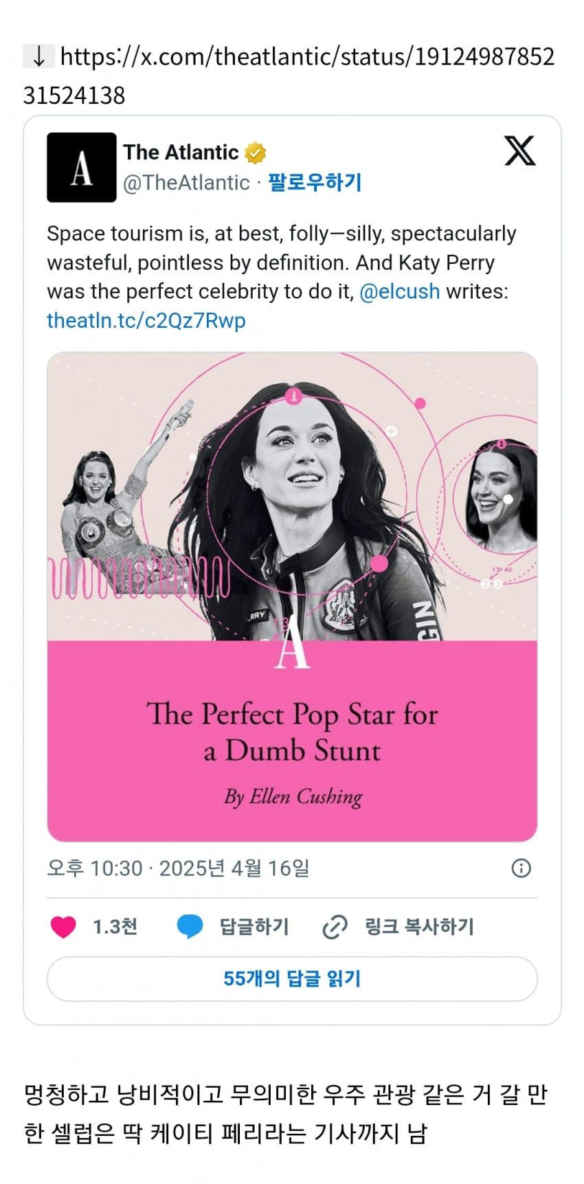 작성시간 25.04.17 동남아가서 과일먹으라는사람도 천지뺴까린데 우주봤으면 뽕ㅇ 취할만하지