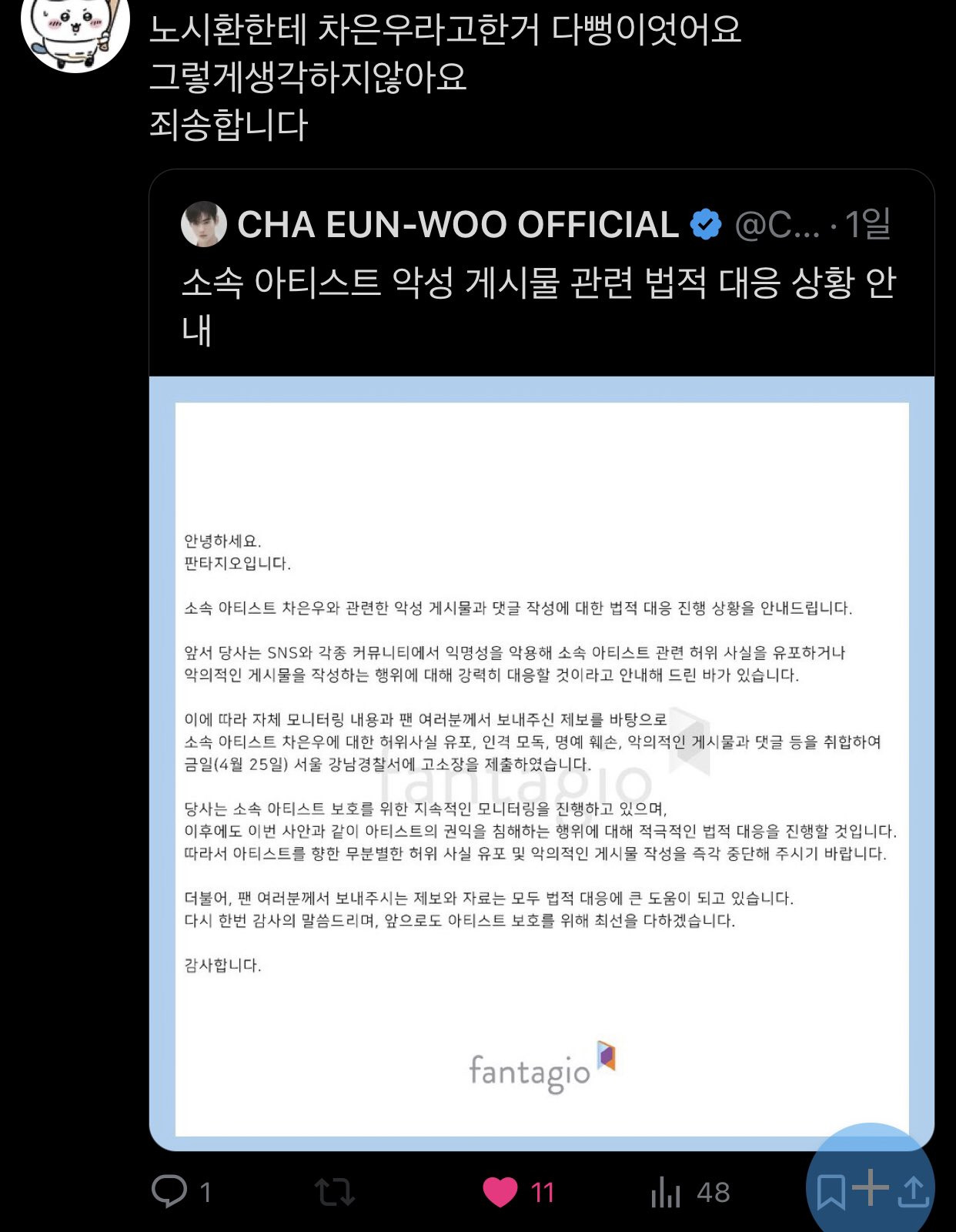 차은우 고소 선언에 한화 이글스 팬 반응 작성자가담항설|작성시간25.04.27|조회수7,613 목록 댓글 13 글자크기 작게가 글자크기 크게가 다음검색 현재 게시글 추가 기능 열기 북마크 공유하기 신고 센터로 신고 댓글 댓글 13 댓글쓰기 답글쓰기 댓글 리스트 답댓글 작성자너구리 혹은 개구리 | 작성시간 25.04.27 어..? 답댓글 작성자상속자들 | 작성시간 25.04.27 환중하겠네... 작성자모티프 | 작성시간 25.04.27 ㅋㅋㅋㅋ 작성자파탈리테 | 작성시간 25.04.27 ㅋㅋㅋㅋㅋㅋㅋㅋㅋㅋ 작성자자유분방한 명수옹 | 작성시간 25.04.27 ㅋㅋㅋㅋㅋㅋㅋㅋ 댓글 전체보기