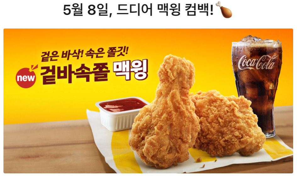 도탁스 (DOTAX) 맥도날드 맥윙 5/8 컴백 작성시간25.05.07|조회수8,945 목록 댓글 16 글자크기 작게가 글자크기 크게가 맥윙 드가자~ 다음검색 현재 게시글 추가 기능 열기 북마크 공유하기 신고 센터로 신고 댓글 16 댓글 리스트 작성시간 25.05.07 이건 왜 팔았다 안팔았다 하는거지?ㅋㅋㅋ가격 개비쌈 ㅠ 작성시간 25.05.07 드가즈아~ 작성시간 25.05.07 나는 맛이 별로든데.. 작성시간 25.05.07 감자대란 때 맥윙 무료교환이 개꿀이었는데ㅠㅜ 작성시간 25.05.07 여름이 오는구나 카페 방문해 더 많은 댓글 만나기!