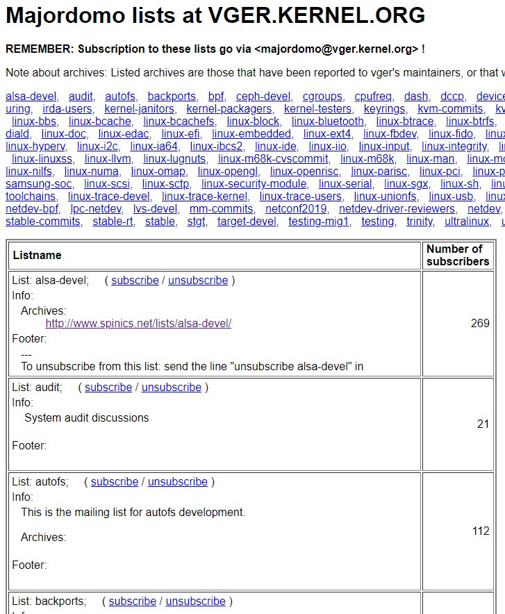 그리고 이건 리눅스 메일링 리스트 목록 사이트....