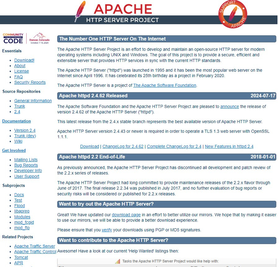 Nginx의 라이벌 Apache의 홈페이지