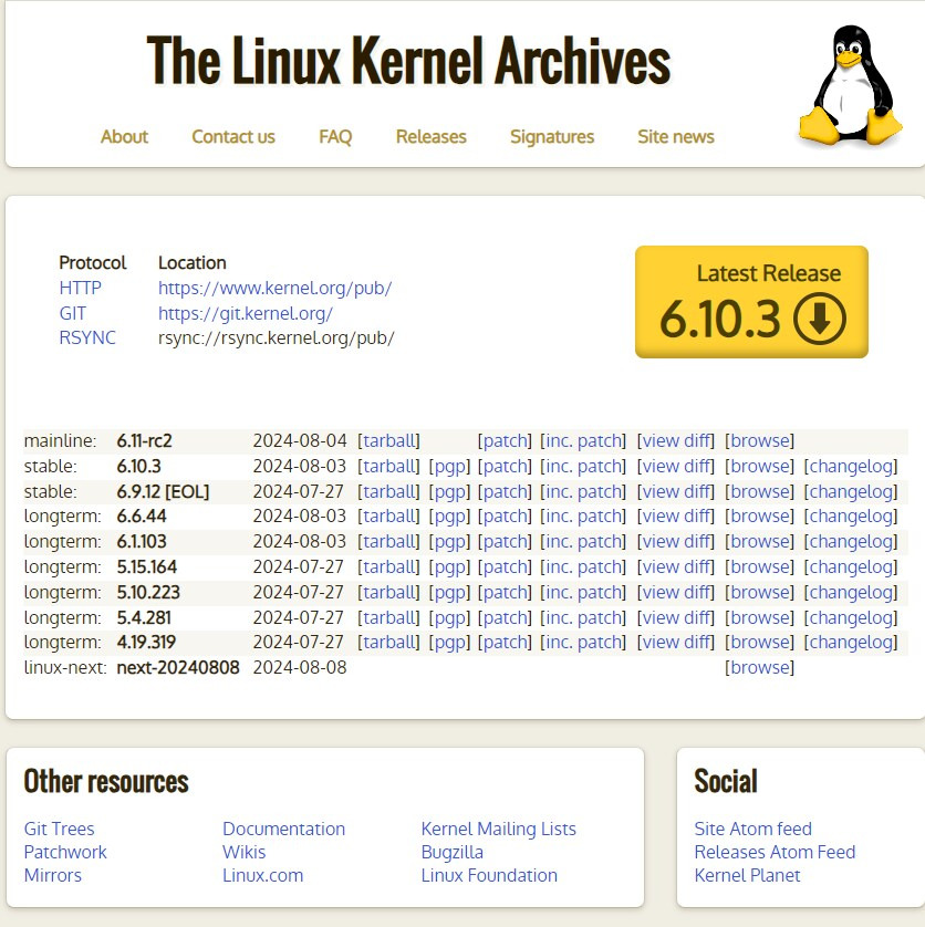 리눅스 커널소스 배포 페이지(kernel.org)