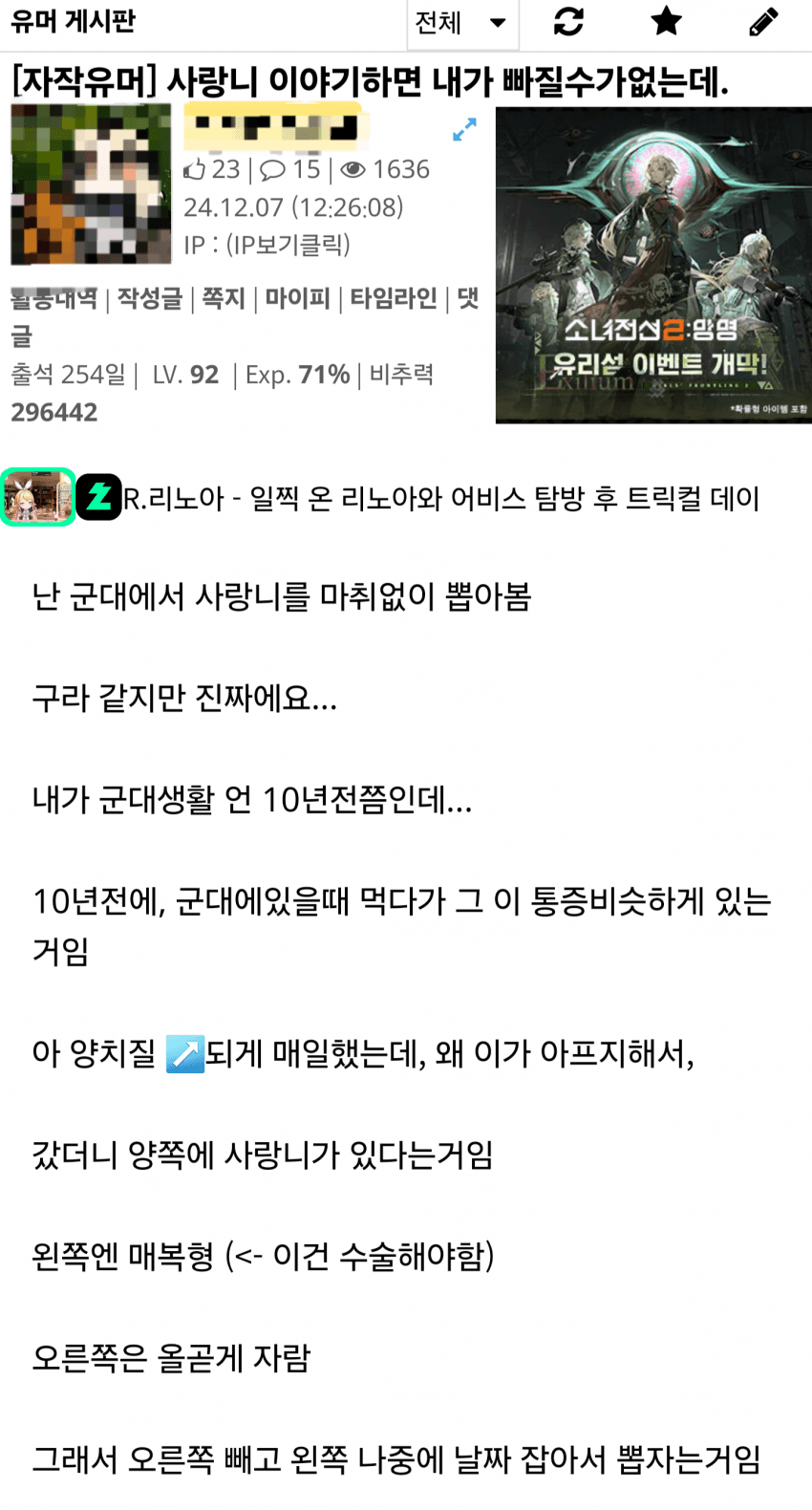 작성시간 25.05.13 애 잘못되면 진급 날아감ㅋㅋㅋㅋㅋ 조인트보다 더한것도 까야지