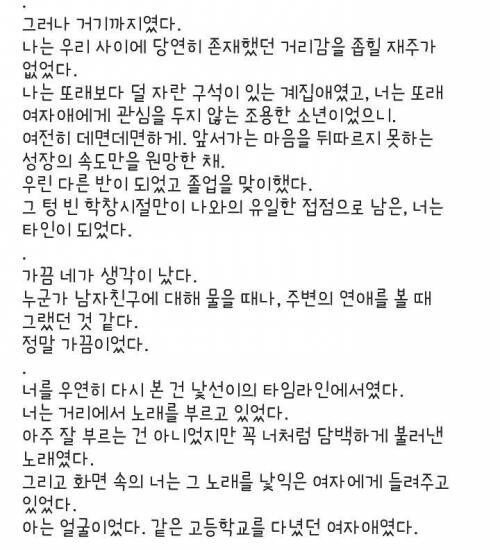 도탁스 (DOTAX) 오랜 첫사랑을 끝낸 여학생 작성시간25.05.13|조회수68,625 목록 댓글 23 글자크기 작게가 글자크기 크게가 다음검색 현재 게시글 추가 기능 열기 북마크 공유하기 신고 센터로 신고 댓글 23 댓글 리스트 작성시간 25.05.13 ㄷㄱ 작성시간 25.05.13 ㄷㄱ 작성시간 25.05.13 너무 예쁜 글이다 작성시간 25.05.13 문학같군 작성시간 25.05.13 ㄷㄱ 카페 방문해 더 많은 댓글 만나기!