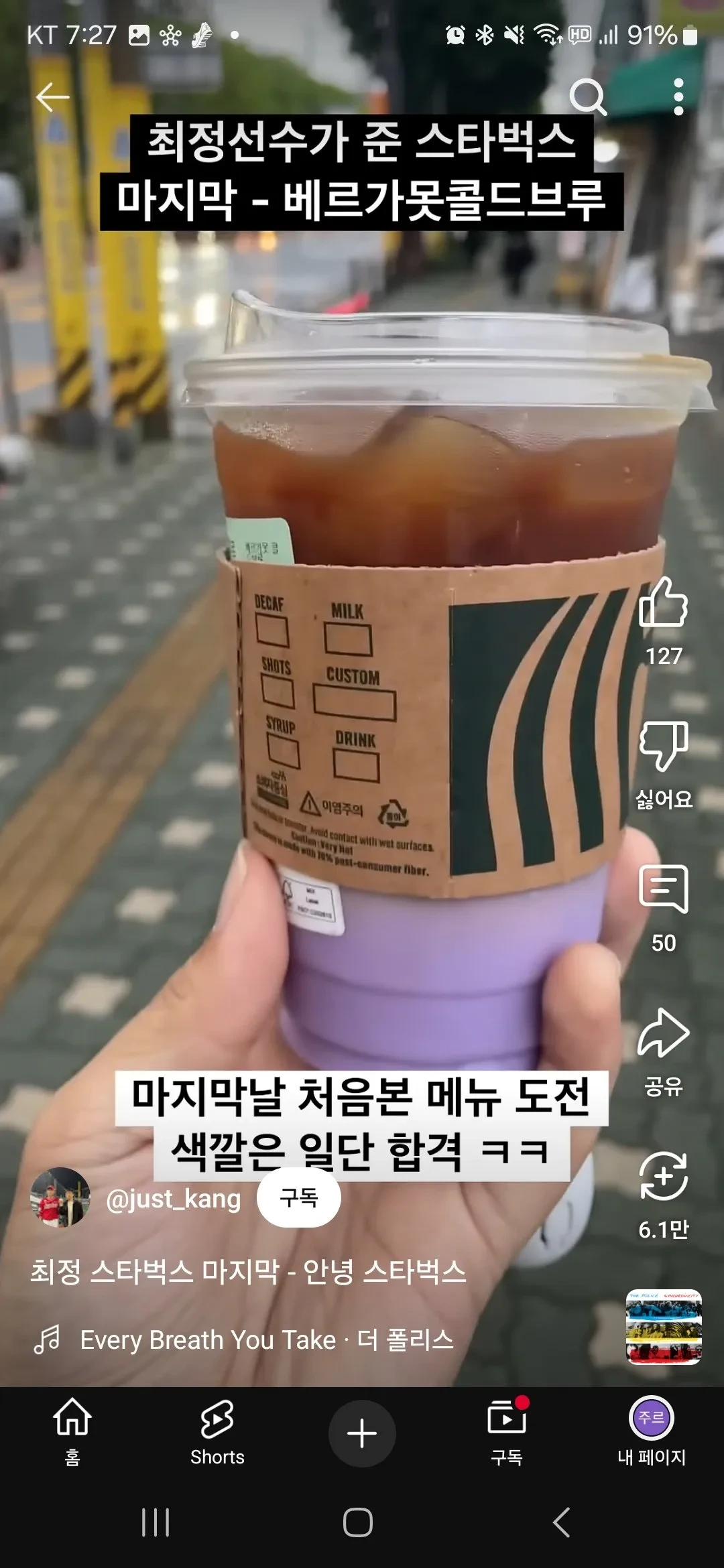 구단에게 볼 넘겨주고 스타벅스1년 이용권을 받았는데