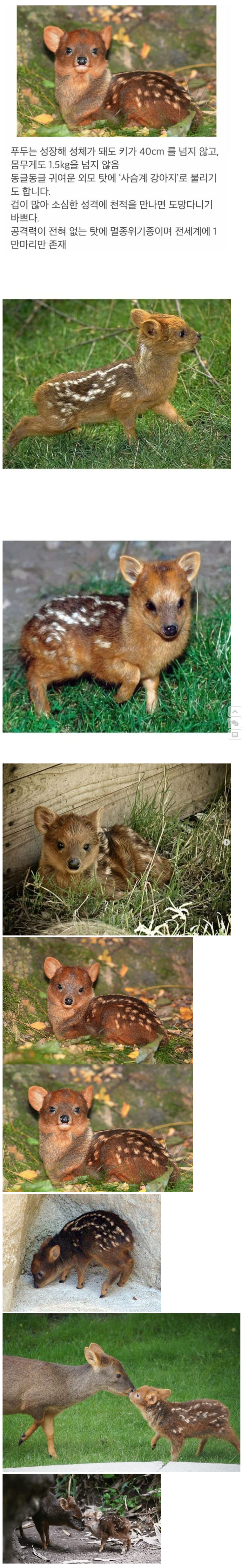 도탁스 (DOTAX) 아기사슴으로 오해받는 멸종위기종 푸두.JPG 작성시간25.05.23|조회수20,250 목록 댓글 9 글자크기 작게가 글자크기 크게가 출처 개드립 다음검색 현재 게시글 추가 기능 열기 북마크 공유하기 신고 센터로 신고 댓글 9 댓글 리스트 작성시간 25.05.23 커엌 졸귀 작성시간 25.05.23 ㄱㅇㅇ 작성시간 25.05.23 애완동물로 만들자 작성시간 25.05.23 왜 저렇게 진화했을까 작성시간 25.05.23 자연에서 살아남기 힘들면 애완동물화도 괜찮을것 같은데 카페 방문해 더 많은 댓글 만나기!