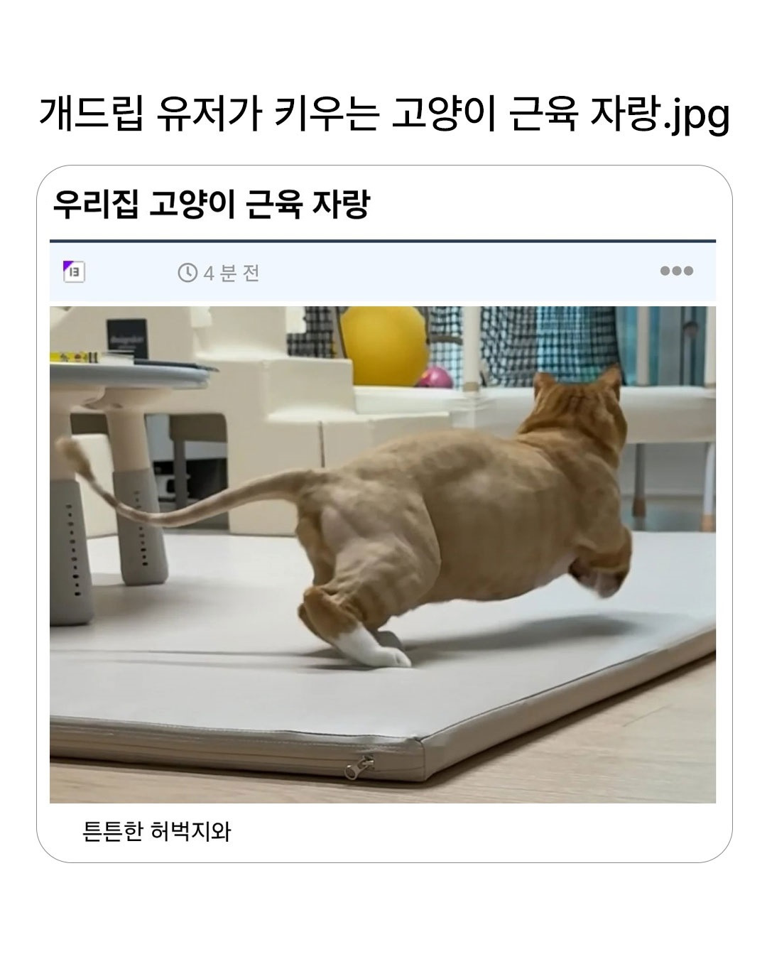 어느 커뮤 유저의 고양이 근육 자랑 작성자가담항설|작성시간25.05.31|조회수20,746 목록 댓글 11 글자크기 작게가 글자크기 크게가 다음검색 현재 게시글 추가 기능 열기 북마크 공유하기 신고 센터로 신고 댓글 댓글 11 댓글쓰기 답글쓰기 댓글 리스트 작성자요염 | 작성시간 25.05.31 지리네 작성자다이스웨어 | 작성시간 25.05.31 개과천선 고양이구나 작성자오답 | 작성시간 25.05.31 아 출신이셔? 작성자갱스타그램 | 작성시간 25.05.31 야옹이! 작성자조양식 | 작성시간 25.05.31 생활하다 오셨네 댓글 전체보기