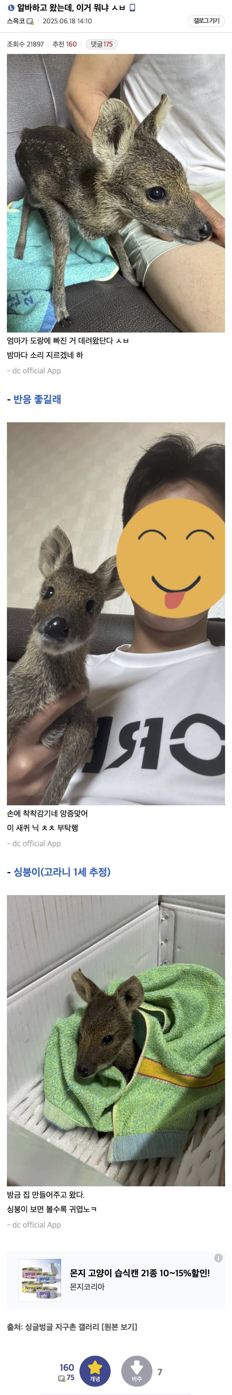 도탁스 (DOTAX) 알바하고 왔는데 모르는 고라니가 있는 디시인 ㄷㄷ.jp 작성시간25.06.18|조회수16,386 목록 댓글 12 글자크기 작게가 글자크기 크게가 다음검색 현재 게시글 추가 기능 열기 북마크 공유하기 신고 센터로 신고 댓글 12 댓글 리스트 작성시간 25.06.18 꾸아아아아악 작성시간 25.06.18 ㄱㅇㅇ 작성시간 25.06.18 애가 눈에 생기가 없네ㅋㅋㅋㅋ 작성시간 25.06.18 코 엄청 촉촉하네ㅋㅋㅋㅋ귀엽다 작성시간 25.06.18 ㄱㅇㅇ 카페 방문해 더 많은 댓글 만나기!
