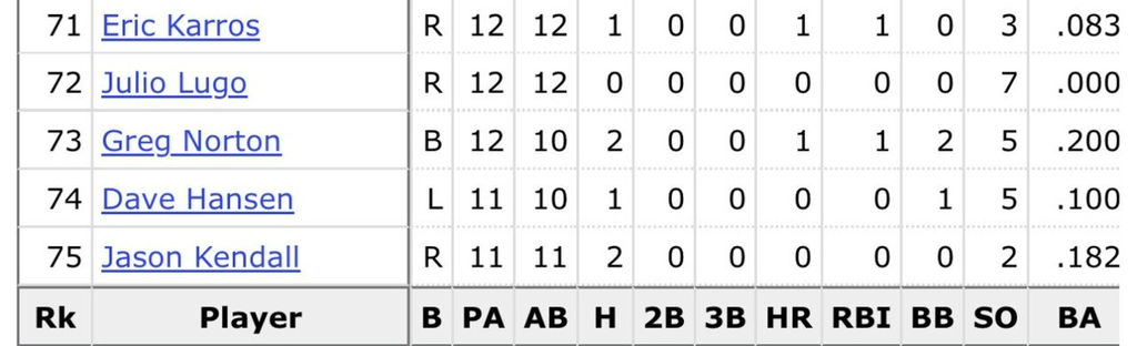 통산 12타수 1안타(1 솔로런) 3삼진 0.083