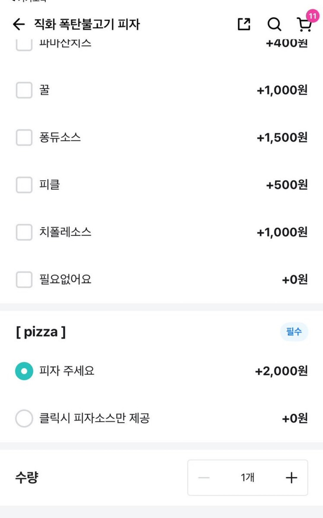 '체크시 피자소스만 제공'한다는 이상한 메뉴를 또 추가함