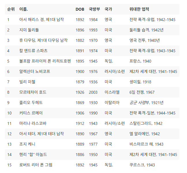 공군 TOP15