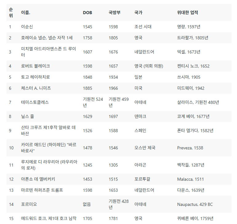 해군 TOP 15