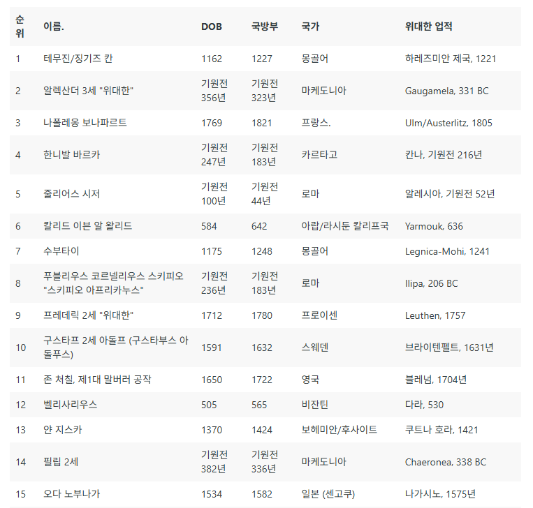 작성시간 25.06.25 근데 한니발이랑 스키피오는 대단한건 알지만 저 순위가 맞나 싶기도 한게.