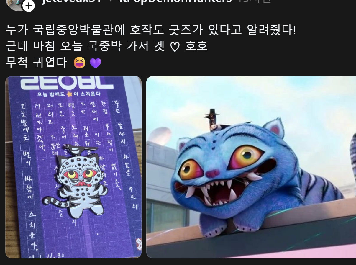 Q 케데헌에 나오는 수상이와 망충이 굿즈가 왜 국중박에 있죠?