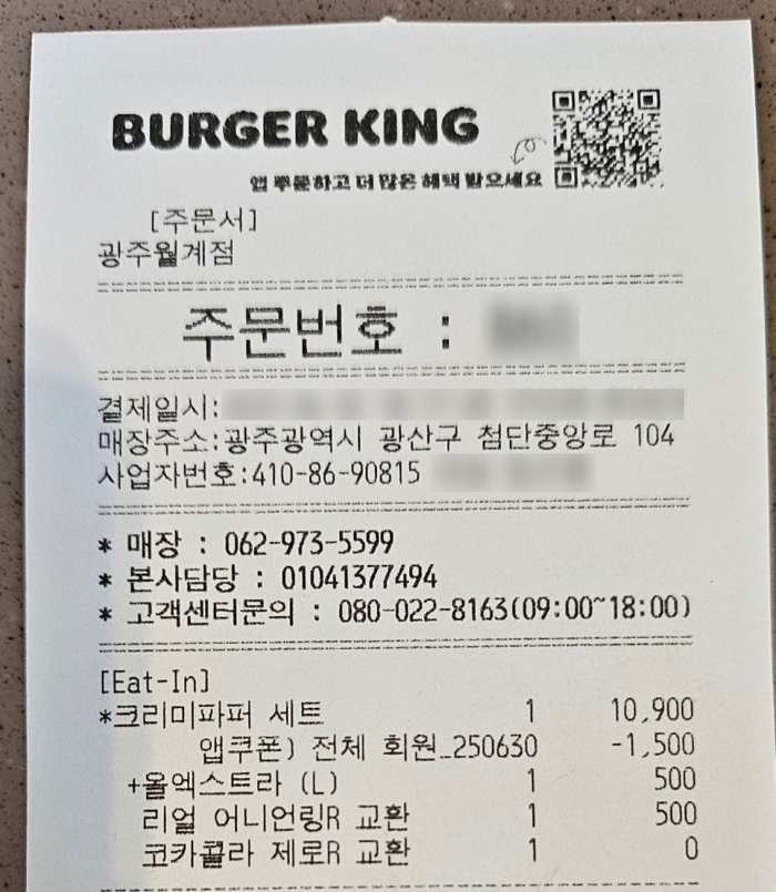 | 버거킹 App 쿠폰 할인 | - 1,500 |
