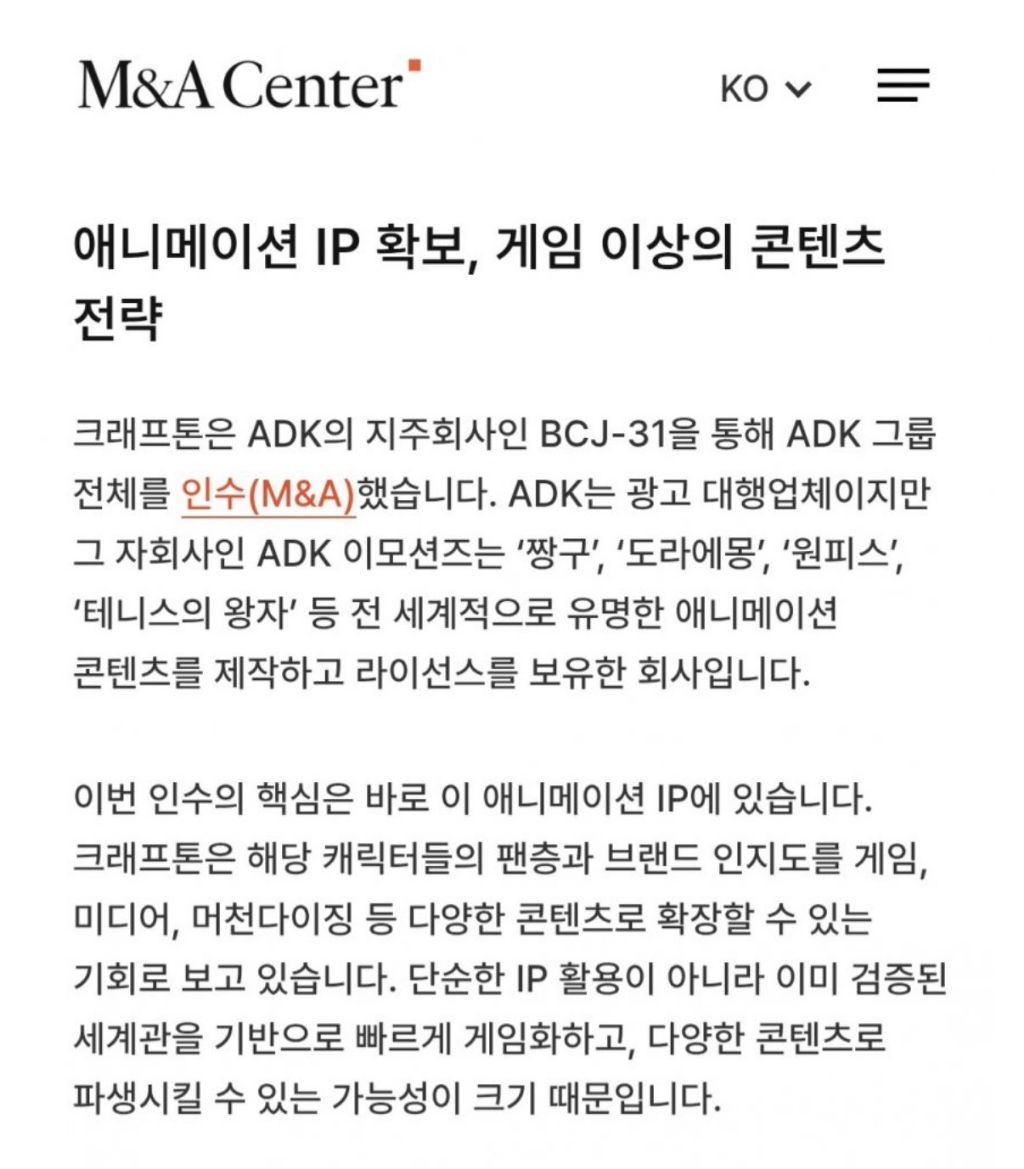 애니메이션 ip를 게임에 활용하기 위해 인수함