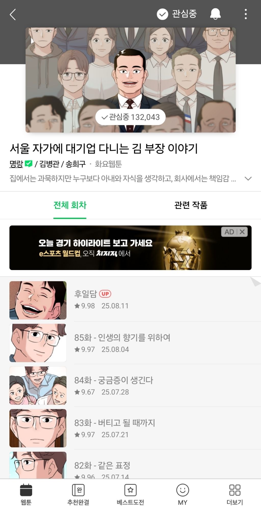 네이버 화요웹툰 <서울 자가 대기업 다니는 김 부장 이야기>