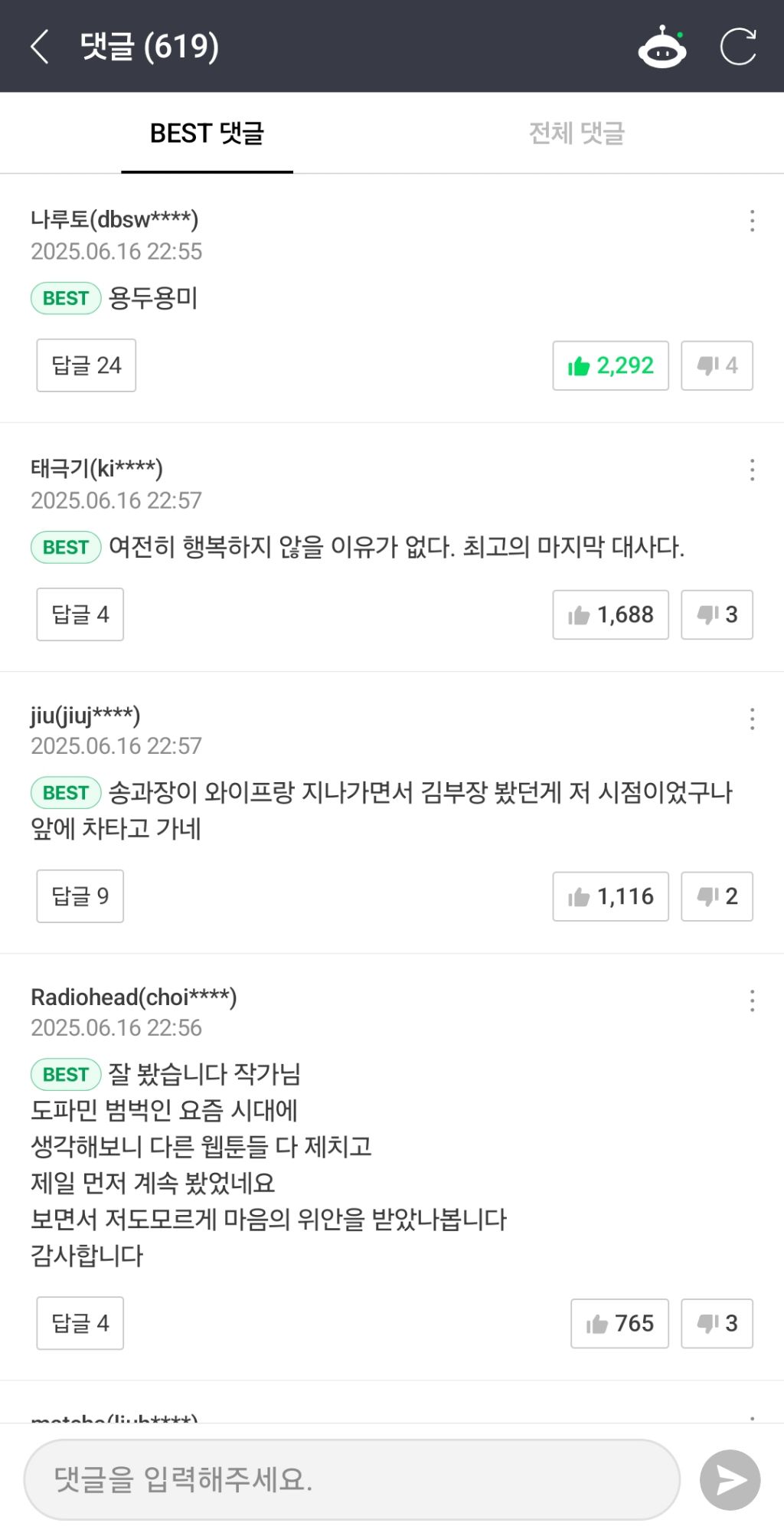 아래는 완결분 베스트 댓글입니다!