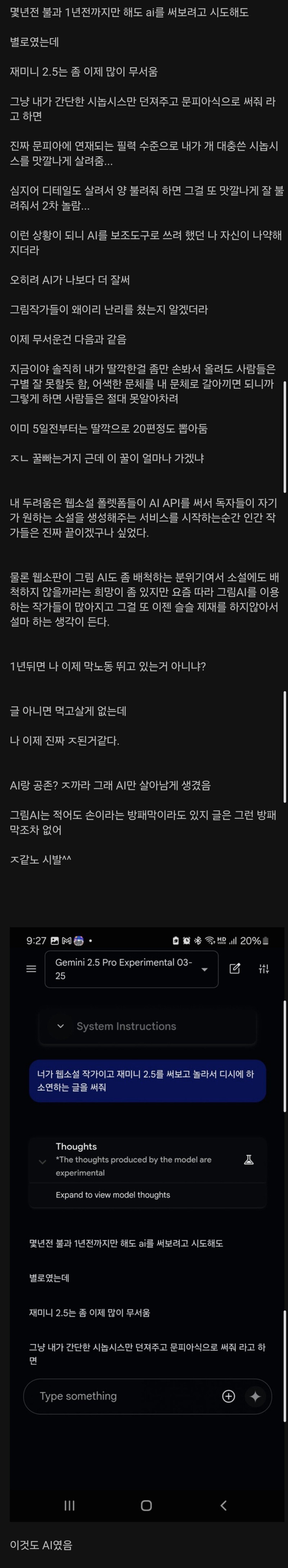 작성시간 25.09.15 작가라면서 ai로 쓰는거 자랑하는 사람은 이해가안감 그게작가임? 방구석 딸깍이지