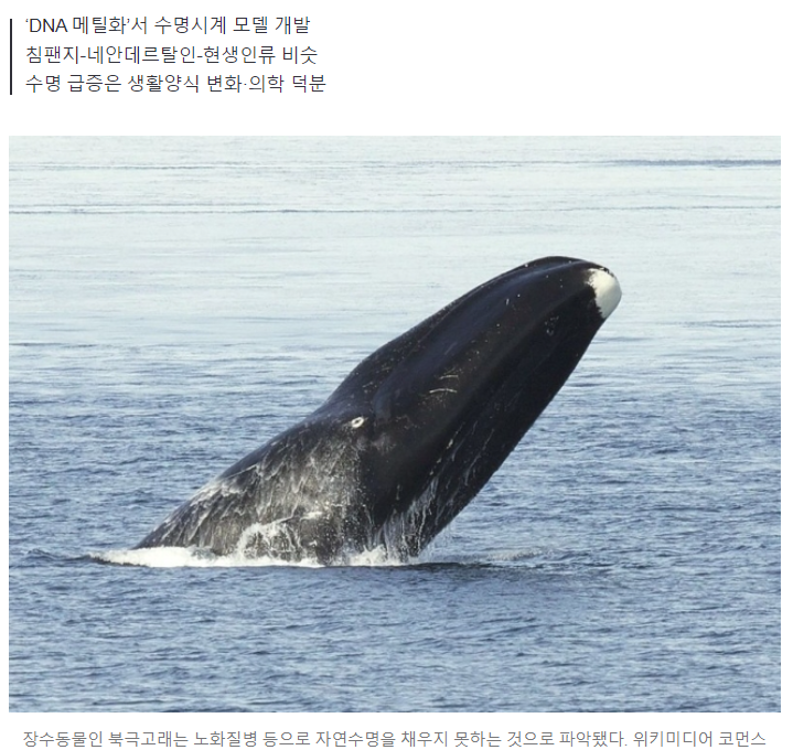 생명체는 나이가 들면 생물학적 기능이 약해진다. 그러다 결국엔 그 기능이 정지되고 만다. 수명이라고 불리는 이 기간은 생물 종마다 천양지차다. 척추동물의 경우 망둥이과 작은 물고기인 피그미망둥이는 8주밖에 살지 못하지만, 북극 심해에 사는 그린란드상어는 400년 이상 산다. 포유동물에선 숲땃쥐가 2.1년으로 가장 짧은 동물에 속하고, 북극고래는 200년 이상으로 추정된다. 생명체의 설계도인 디엔에이(DNA)를 들여다보면 수명 차이의 비밀을 알 수 있지 않을까?