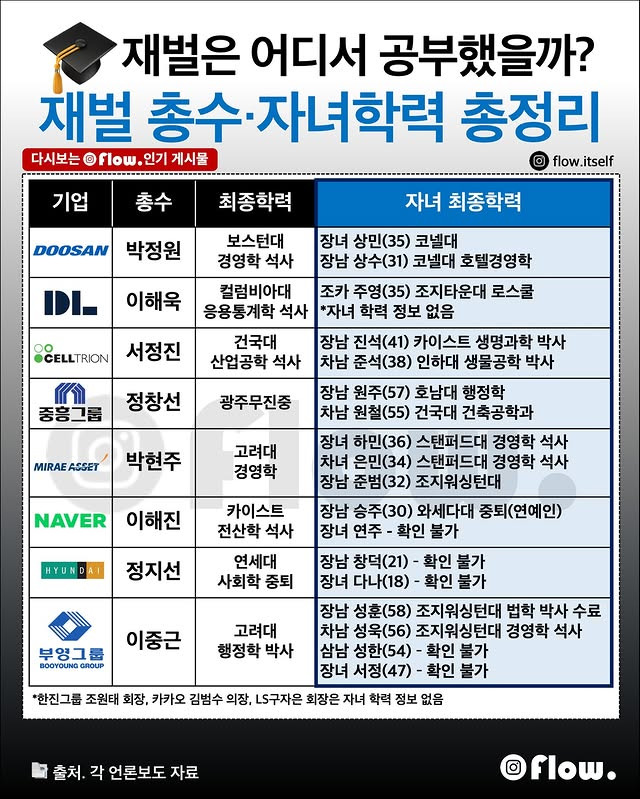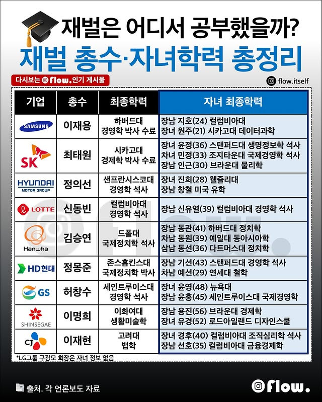 작성시간 25.09.16 대부분이 문과네.. 기술이 중요한 대기업 오너들의 자녀들이 죄다 흠..