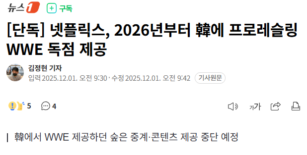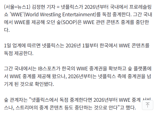 1. 내년 1월 1일부터 넷플릭스를 통해 생중계 (한국 해설 지원)