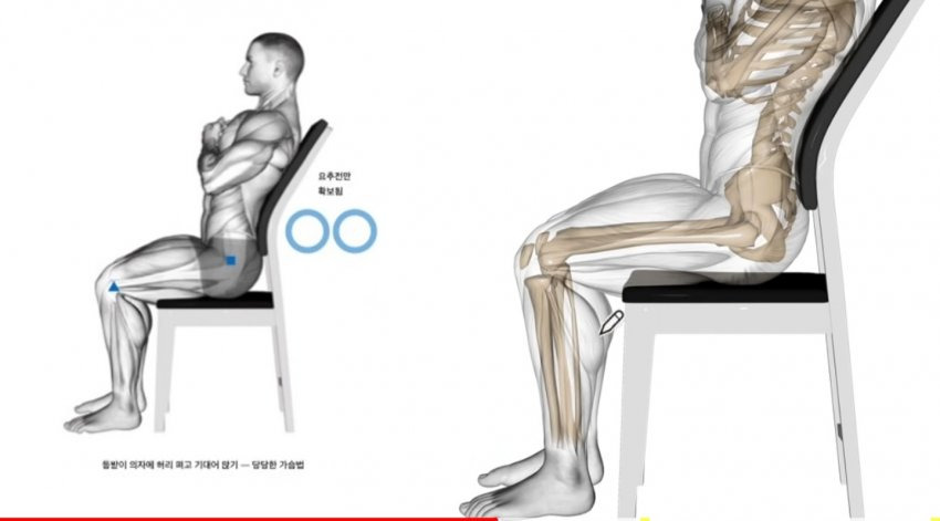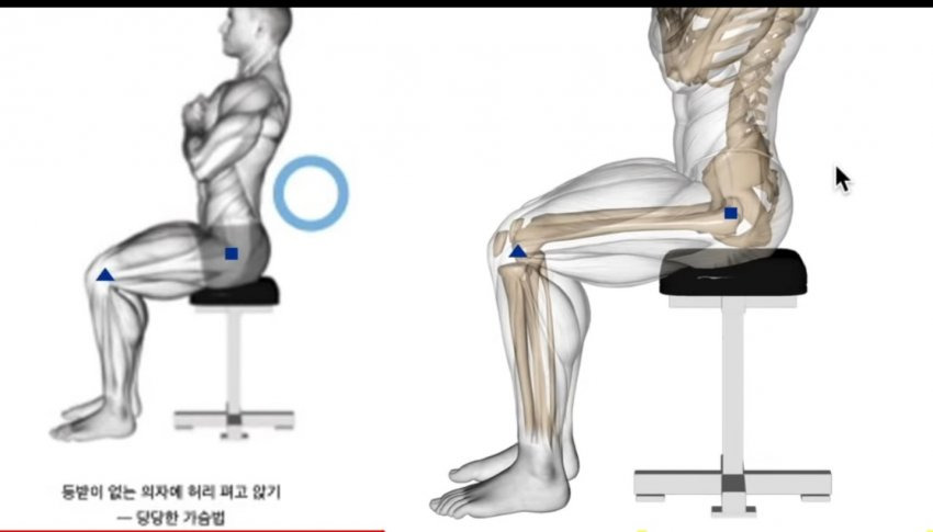 1. 의자 높이는 엉덩이 관절이 무릎보다 살짝 높아야함