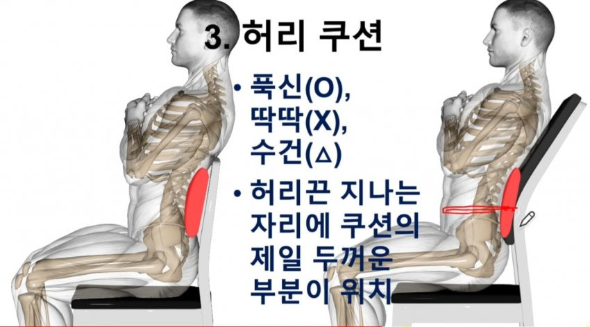 3. 허리와 등받이 사이에 푹신한 쿠션 넣어라