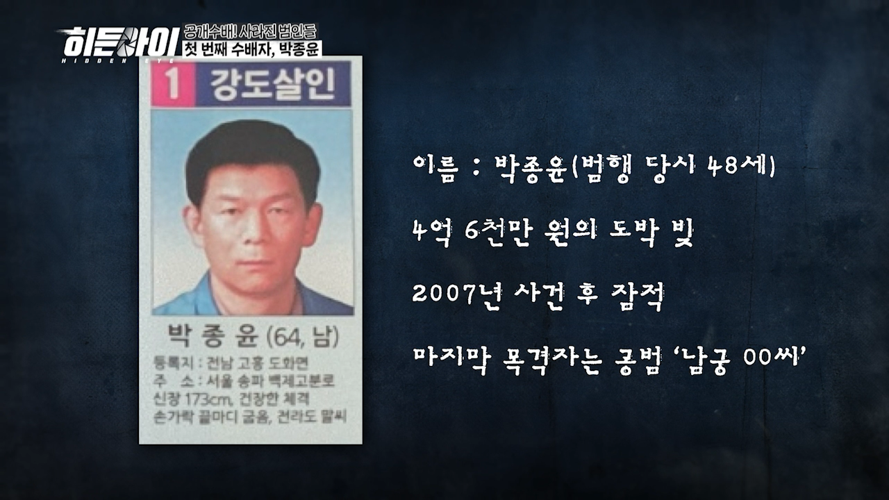 이번에는 공개수배 1번 강도살인 박종윤 사건 다뤄줬는데 너무 미스터리임..