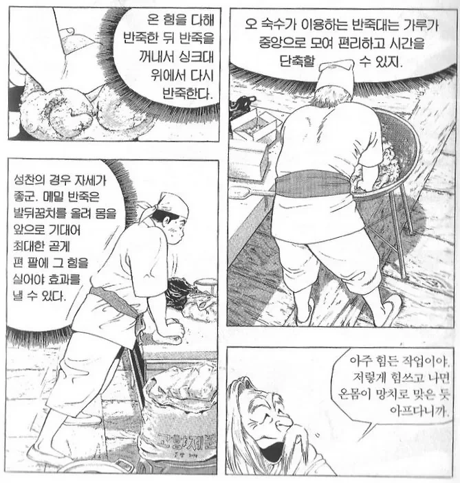 사실 체중을 실어서 반죽하는 자세였음
