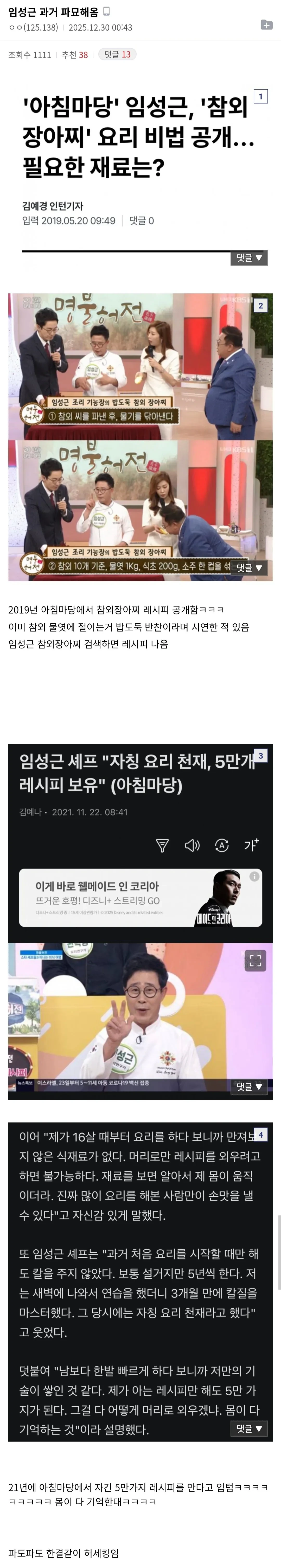 흑백2ㅅㅍ)요즘 핫한 임성근 셰프의 과거를 파묘해왔다는 디씨인 작성자아향기2|작성시간25.12.30|조회수8,800 목록 댓글 18 글자크기 작게가 글자크기 크게가 다음검색 현재 게시글 추가 기능 열기 북마크 공유하기 신고 센터로 신고 댓글 댓글 18 댓글쓰기 답글쓰기 댓글 리스트 작성자윳키 | 작성시간 25.12.30 물엿 조금만쓰면안되나 넘많은데참외를 몇십키로쓰나ㅠ 작성자시흥교통 | 작성시간 25.12.30 그놈의 5만개 ㅋㅋㅋㅋㅋㅋㅋㅋㅋㅋㅋㅋㅋㅋㅋ 작성자아다치 | 작성시간 25.12.30 5만갓 작성자Hustler | 작성시간 25.12.30 오만소스좌 작성자적절한 김대기 | 작성시간 25.12.30 그냥 많다는 표현을 5만개로 하는거같음 ㅋㅋ 댓글 전체보기