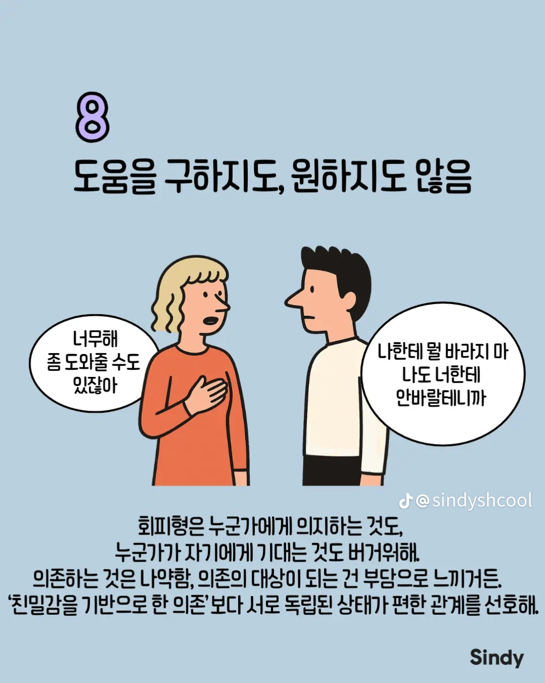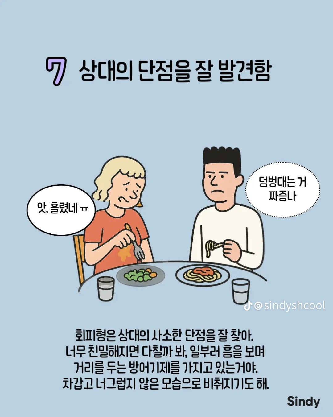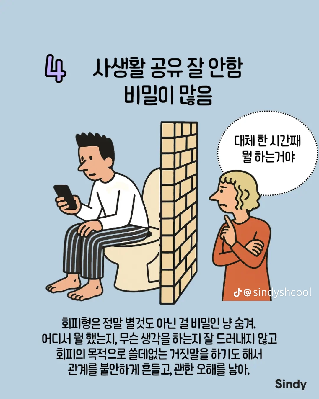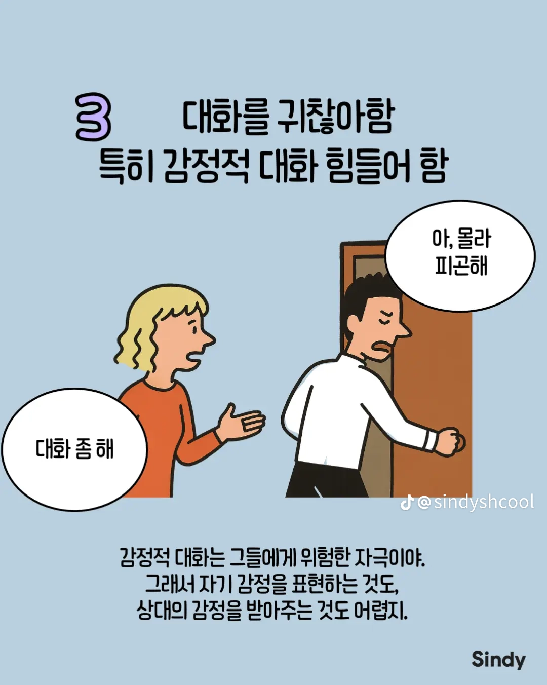 회피형의 특징 8가지 작성자둘기얏|작성시간25.12.30|조회수4,965 목록 댓글 19 글자크기 작게가 글자크기 크게가 다음검색 현재 게시글 추가 기능 열기 북마크 공유하기 신고 센터로 신고 댓글 댓글 19 댓글쓰기 답글쓰기 댓글 리스트 작성자안하는것과못하는것은엄연히다르지요 | 작성시간 25.12.30 집착 가스라이팅을 상대가 회피형이라 치부하는 사람들 개많늠 , 본인부터 돌아보시길 답댓글 작성자올인럽 | 작성시간 25.12.30 ㄹㅇ 작성자사막고글 | 작성시간 25.12.30 저런사람은 혼자살지 결혼은 왜 하는거 작성자국밥충 | 작성시간 25.12.30 나 아니었네 ㅋ 작성자GoonDin | 작성시간 25.12.30 존나 회피형인데 반이상이 아닌거 같은데 댓글 전체보기