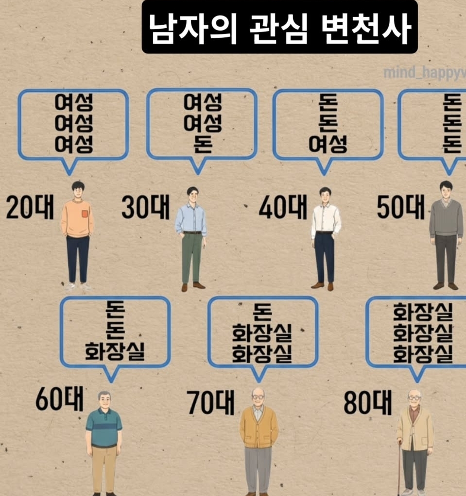 나이에 따라 바뀐다는 남자의 관심 변천사 작성자쿨맨|작성시간25.12.30|조회수3,035 목록 댓글 4 글자크기 작게가 글자크기 크게가 다음검색 현재 게시글 추가 기능 열기 북마크 공유하기 신고 센터로 신고 댓글 댓글 4 댓글쓰기 답글쓰기 댓글 리스트 작성자사천볶음밥 | 작성시간 25.12.30 ㅋㅋ화장실은 뭐지 답댓글 작성자쿨맨 작성자 본인 여부 작성자 | 작성시간 25.12.30 혼자 배변문제해결못하는 분들도 많아서..그거 말하는거 답댓글 작성자사천볶음밥 | 작성시간 25.12.30 쿨맨 설마했는데 먼가 씁쓸하네요...ㅎㅎ 답댓글 작성자또다시으악 | 작성시간 25.12.30 나이드시면 참으시는게 힘들어져서 화장실 자주 찾는걸거에용! 댓글 전체보기