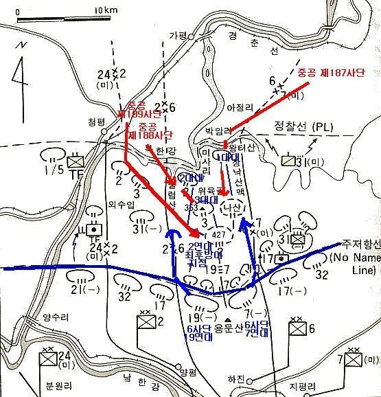 이때 6사단 19연대와 7연대가 중국군의 좌우 측면을 강하게 찌르자